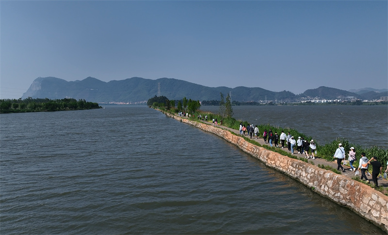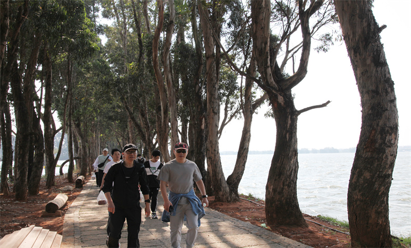 “拾初心,礪前行,我們出發(fā)吧!”上午9:30,隨著開步走令發(fā)出,大家在一片歡呼聲中邁開了步子。徒步從三月廣場出發(fā),沿東風壩、滇池綠道草海段實地觀摩滇池保護生態(tài)文明建設(shè)成果,全程達8公里。